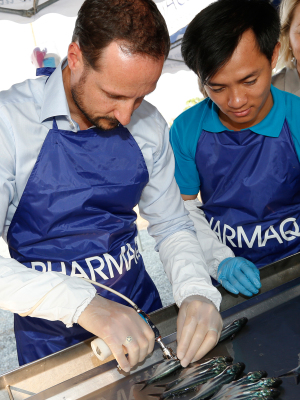 PharmaqOn a visit to Norwegian companies located in the Mekong Delta region, The Crown Prince and Crown Princess were also able to try their hand at administering vaccinations to fish. Photo: Lise Åserud / NTB scanpix -