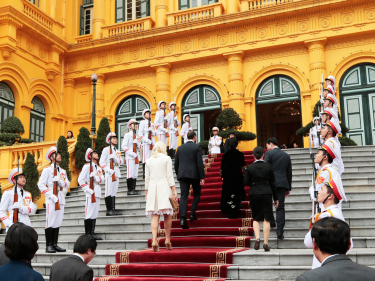 Welcoming ceremonyThe Crown Prince and Crown Princess officialle welcomed by the Vice President of Vietnam, Her Excellency Mrs Nguyen Thi Doan. Photo: Lise Åserud, NTB scanpix -