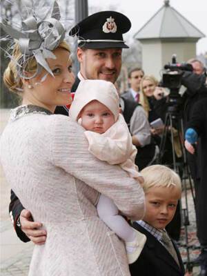 ArrivalThe Crown Prince, The Crown Princess and Marius arriving with the Princess before the ceremony (Photo: Heiko Junge, Scanpix) -