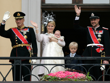 The Palace balconyThe Crown Prince and Crown Princess with Princess Ingrid Alexandra at the Palace balcony after the ceremony (Photo: Heiko Junge, Scanpix) -