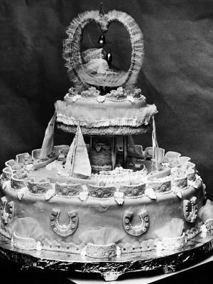 The cakeThe weddingcake, decorated with horseshoes for good luck. Photo: NTB scanpix. -