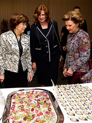 A Taste of NorwayQueen Sonja shows First Lady Silvia Gašparovičová "a Taste of Norway" - a buffet showcasing Norwegian seafood and cured meats (Photo: Terje Bendiksby / Scanpix) -