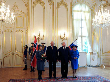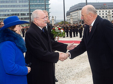 WelcomePresident Ivan Gašparovič and Mrs Silvia Gašparovičová welcome King Harald to Slovakia (Photo: Terje Bendiksby / Scanpix) -