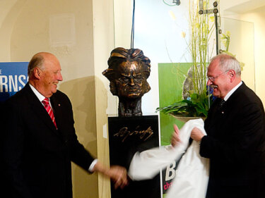 BjørnsonKing Harald and President Ivan Gašparovič unveil the bust of Bjørnstjerne Bjørnson at Bratislava Fortress (Photo: Terje Bendiksby / Scanpix) -