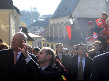 Banská ŠtiavnicaKing Harald on a guided tour of Banská Štiavnica (Photo: Radovan Stoklasa, Reuters / Scanpix) -