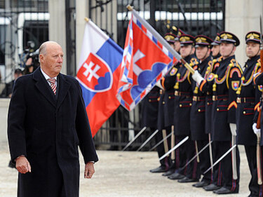 Inspection of the guardKing Harald and Queen Sonja were on a State Visit to Slovakia 26 - 28 October. Here, King Harald inspects the guard during the welcoming ceremony in Bratislava (Photo: Radovan Stoklasa / Reuters /Scanpix) -