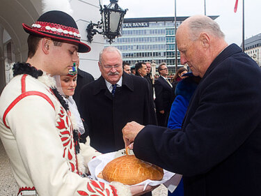 Bread and saltKing Harald is offered bread and salt, a traditional welcoming ritual in Slovakia (Photo: Terje Bendiksby / Scanpix) -