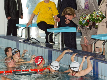 Gaudeamus CentreQueen Sonja visits the Gaudeamus Social Service Home for children with disabilities. The pool is primarily funded by Norwegian grants through the EEC (Photo: Terje Bendiksby / Scanpix) -