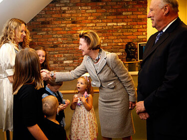 The Norwegian Seamen's ChurchKing Harald and Queen Sonja with members of the Children's quire that sang for them at the Seamen's Church (Poto: Lise Åserud / Scanpix) -
