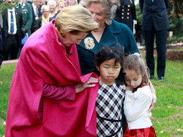 The Norwegian Seamen's ChurchDronning Sonja with children outside the Norwegian Seamen's Church (Photo: Sigrid Thorbjørnsen) -
