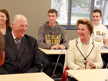 St. Olaf CollegeKing Harald and Queen Sonja visited the Norwegian students at St.Olaf College (Photo: Lise Åserud) -