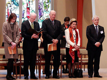 Augsburg CollegeKing Harald and Queen Sonja attend a student worship service in the chapel of Augsburg College (Photo: Lise Åserud / Scanpix) -