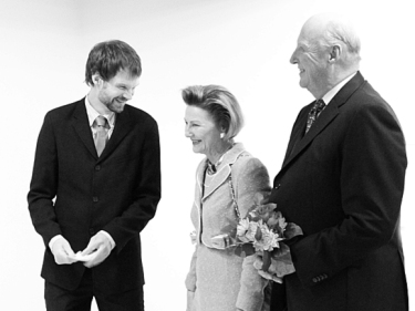 The Norwegian Seamen's ChurchKing Harald and Queen Sonja with artist Thomas Phil during a tour of the Trygve Lie Gallery. (Photo: Sigrid Thorbjørnsen) -