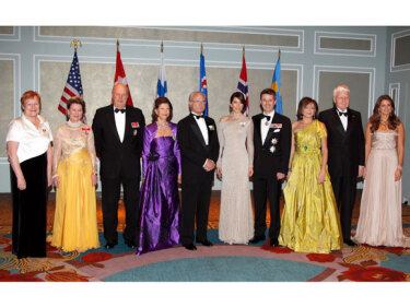 ASF GalaGathered for the ASF Gala in New York (from left): President Tarja Halonen (from left), Queen Sonja, King Harald, Queen Silvia, King Carl Gustaf, Crown Princess Mary, Crown Prince Fredrik, Dorrit Moussaieff, President Ólafur Ragnar Grímsson and Princess Madeleine (Photo: Lise Åserud / Scanpix) -