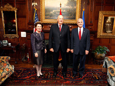 ReceptionKing Harald and Queen Sonja at a reception at the residence of the Governor Mark Dayton of Minnesota (Photo: Lise Åserud / Scanpix). -
