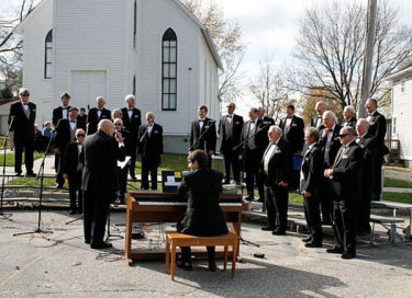 The Luren SingersThe Luren Singers, the oldest Norwegian-American men's choir in the US reherse outside Vesterheim (Photo: Urd Berge Milbury) -