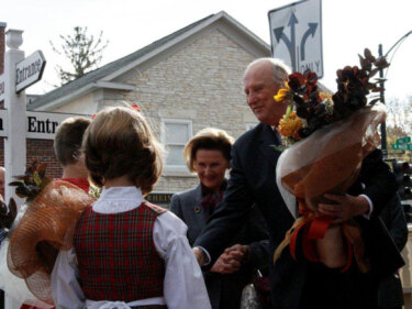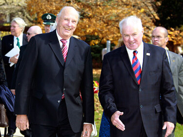 Augsburg CollegeKing Harald and Queen Sonja visit the Peace Pole Monument at Augsburg College (Photo: Lise Åserud / Scanpix) -