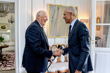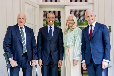 Hans Majestet Kongen og Hennes Kongelige Høyhet Kronprinsessen møtte USAs tidligere president Barack Obama og statsminister Jonas Gahr Støre på Bygdø kongsgård tirsdag 13. mai 2025.