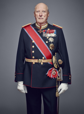 Photo album containing portraits of His Majesty King Harald. For editorial use only.