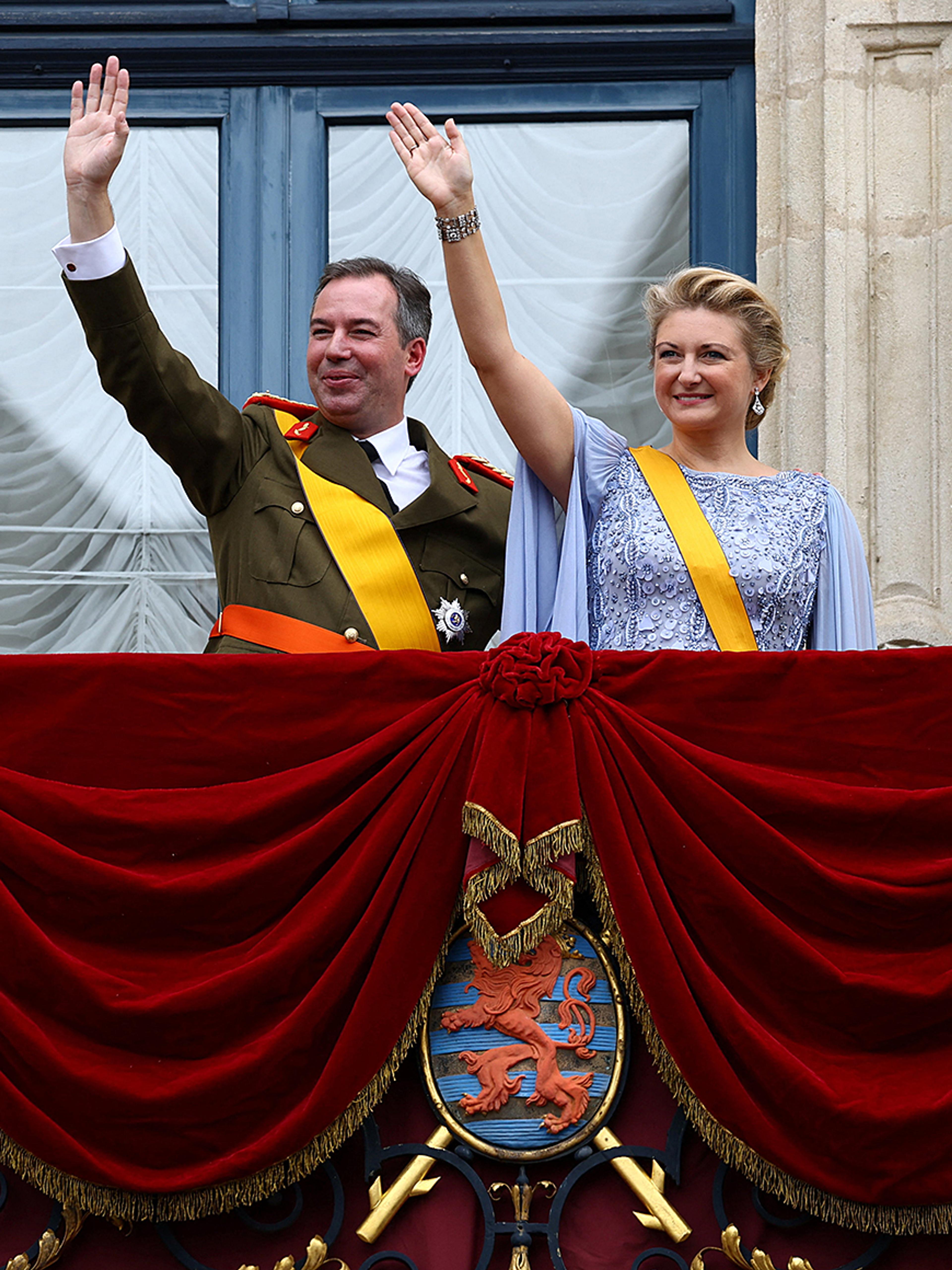 Many had gathered outside the Grand Ducal Palace in Luxembourg to honour the new Grand Duke and Grand Duchess. They also had the chance to thank Grand Duke Henri and Grand Duchess Maria Teresa for their 25 years of service as they joined Grand Duke Guillaume and Grand Duchess Stéphanie on the palace balcony.