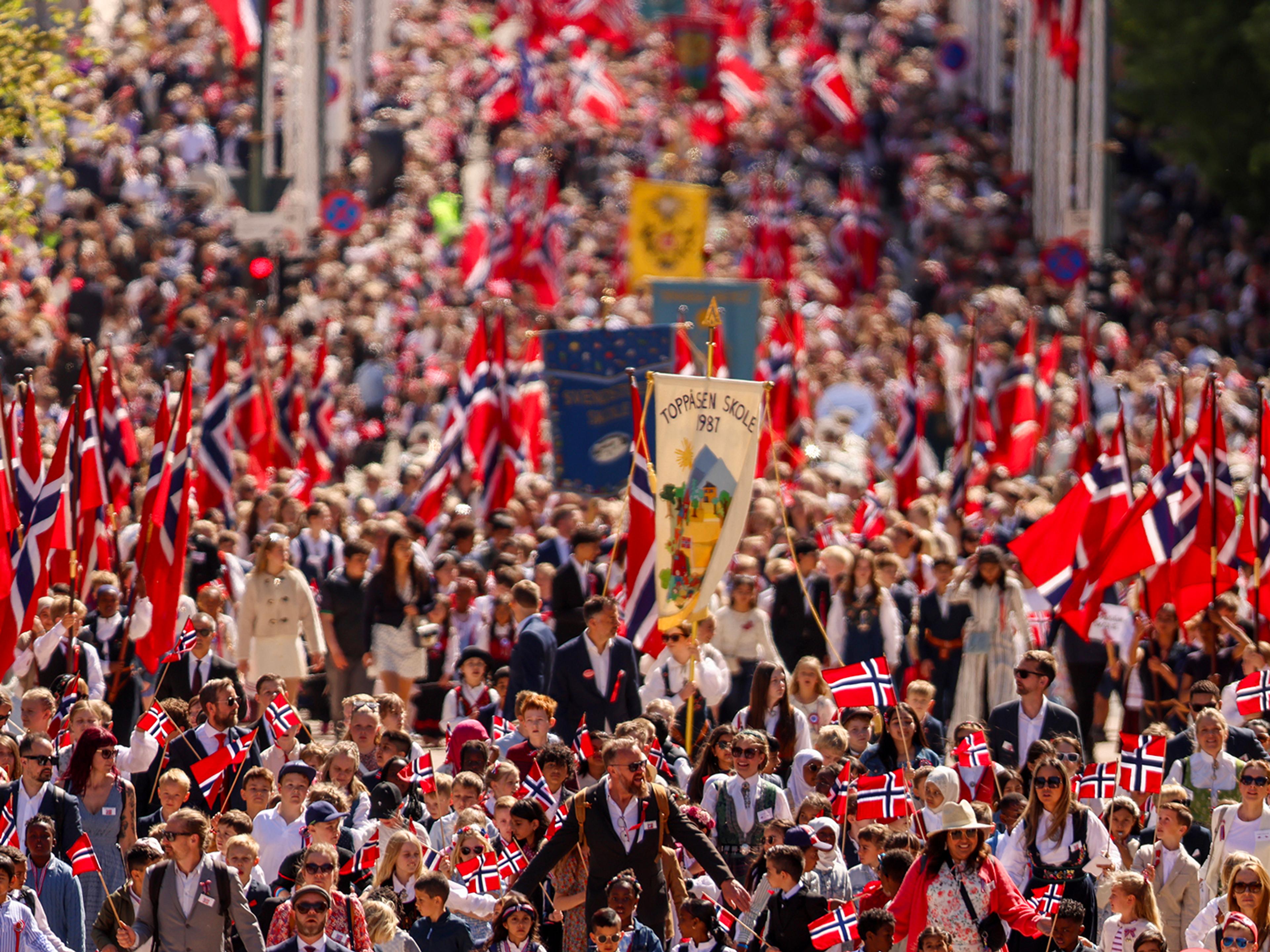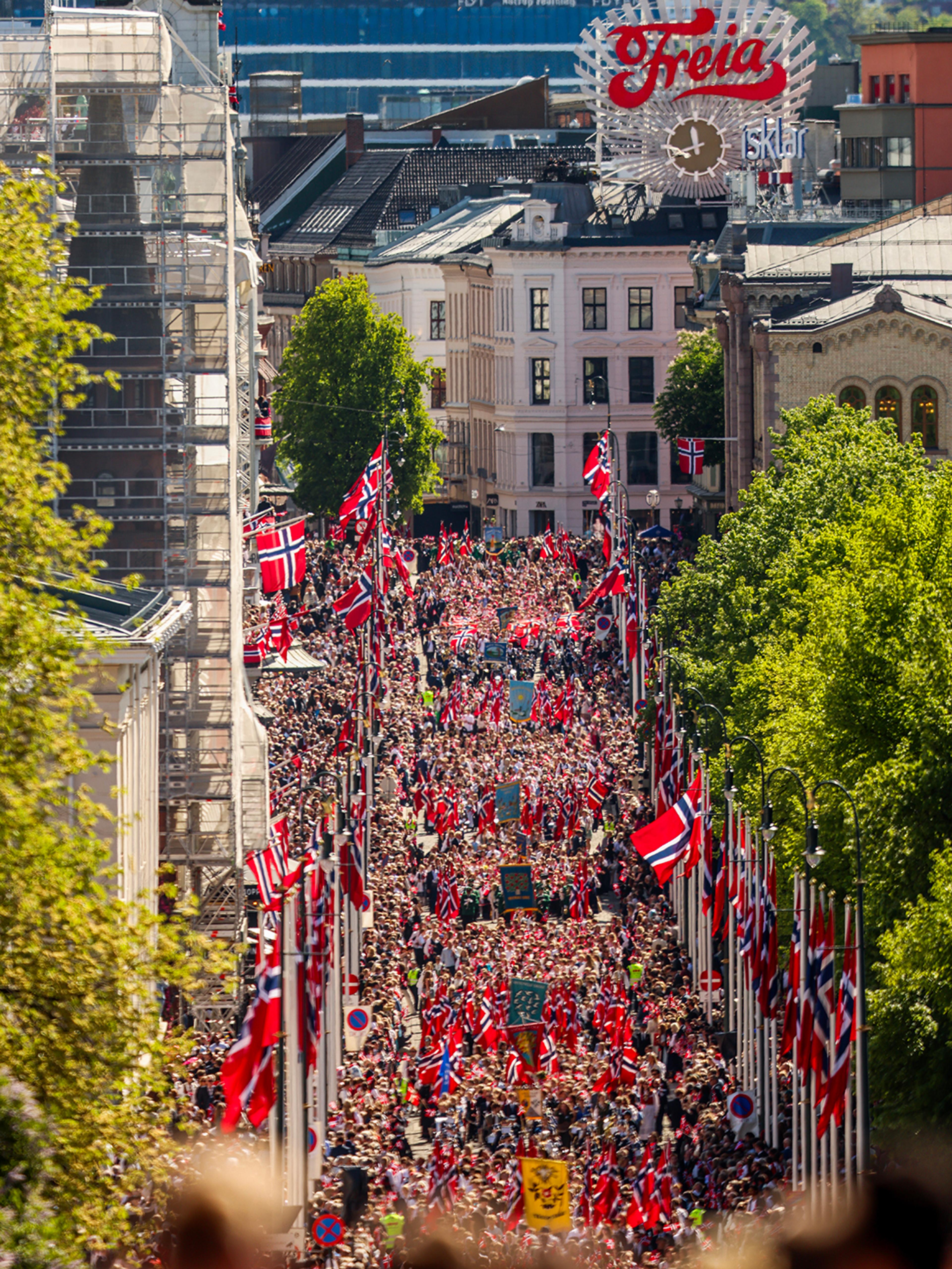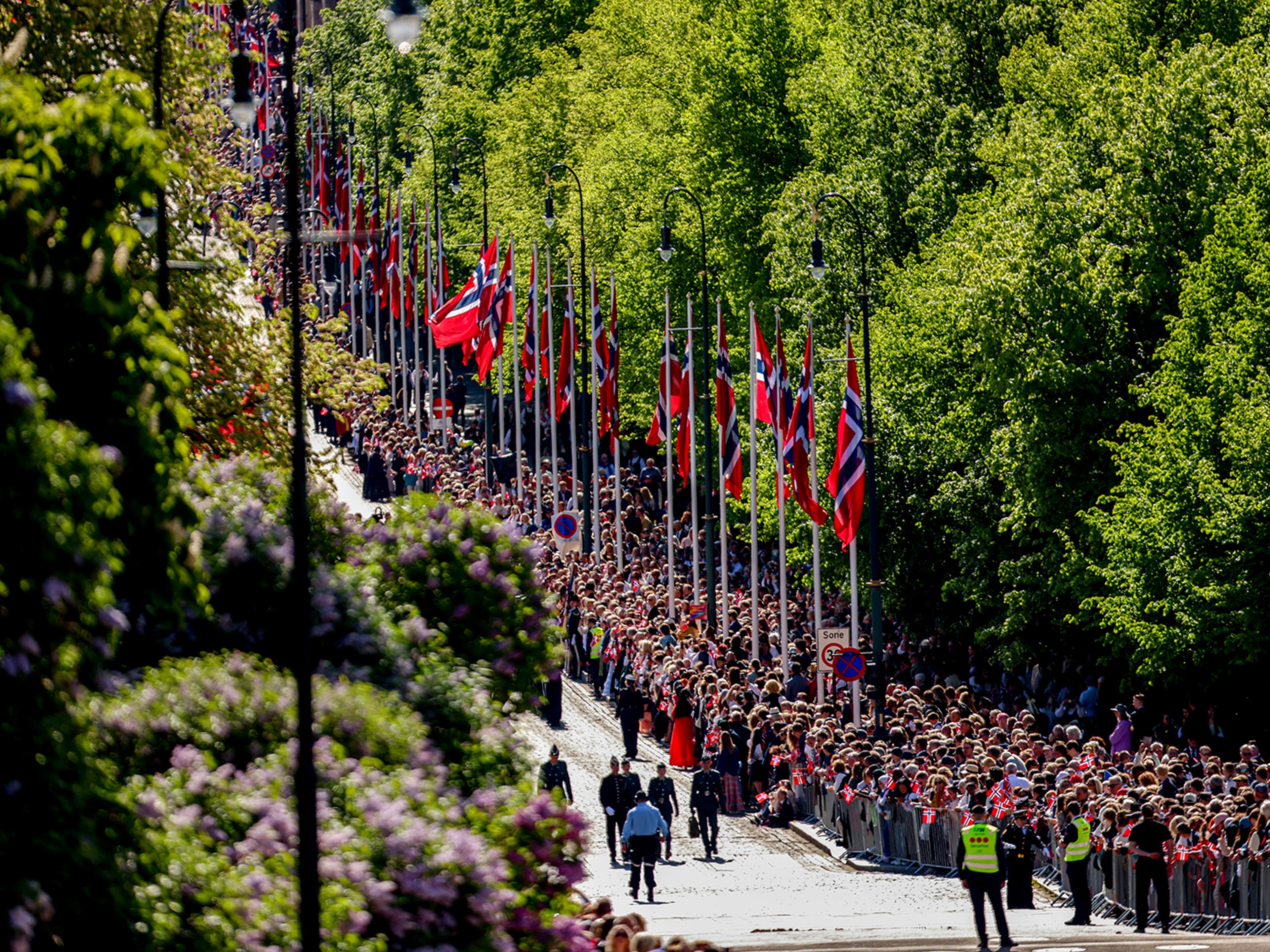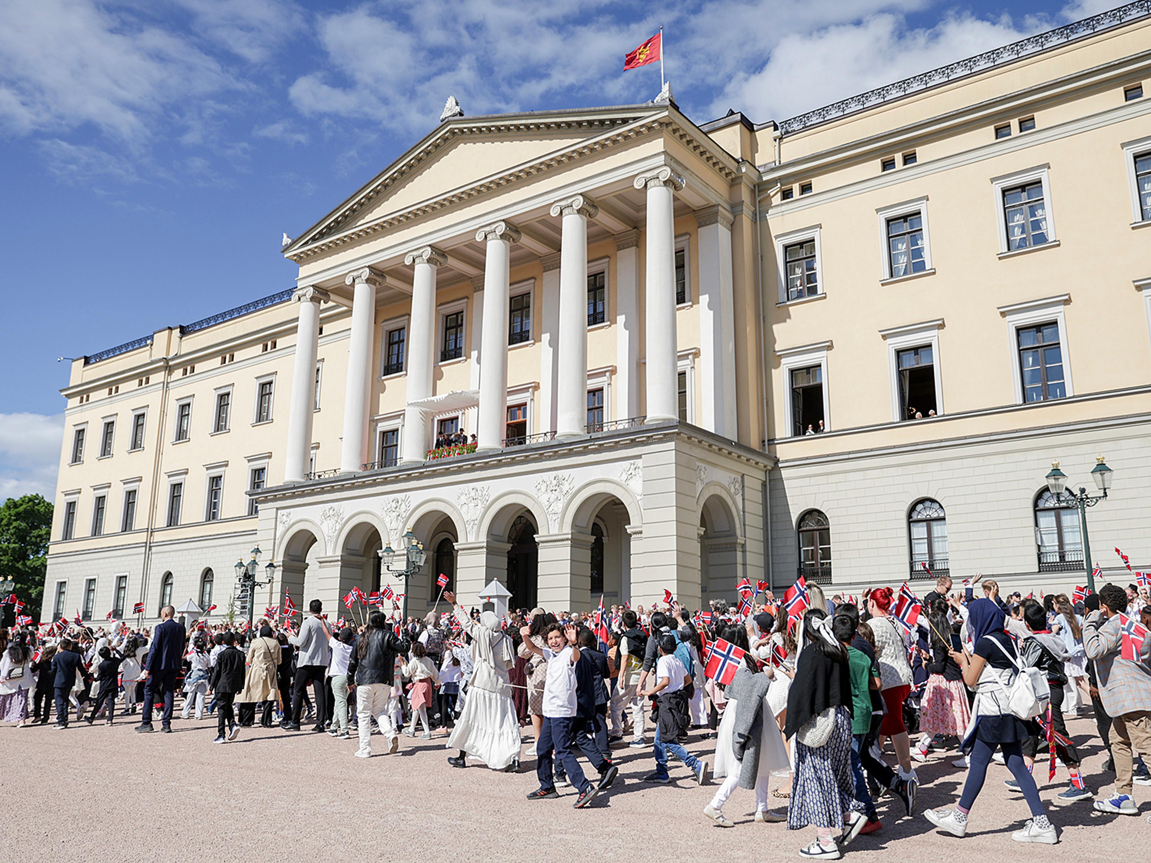 The Royal Family was in attendance on the Palace Balcony when the children's parade reached the Palace Square at 10:30 this morning. From there, they could greet more than 26,000 children from 109 schools taking part in Oslo's children's parade this year.