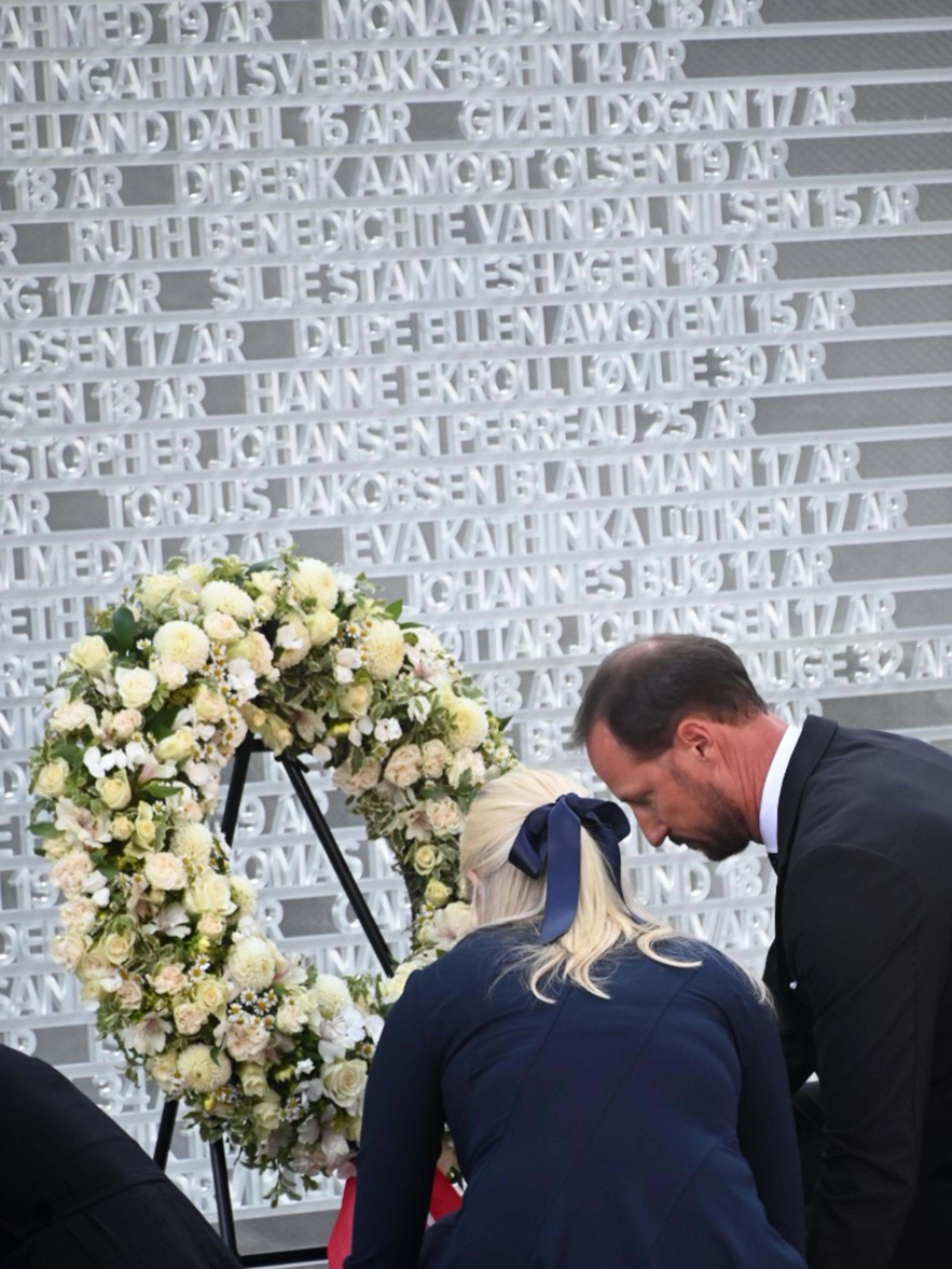 Four wreaths were placed at the memorial to those killed in the attacks 10 years ago. The Prime Minister, Their Royal Highnesses The Crown Prince and Crown Princess, Astrid Hoem and Lisbeth Røyneland straightened the ribbons on each of their wreaths. After a minute of silence, Magnus Aannestad Oseth performed Til ungdommen (“To the Youth”) on trumpet.