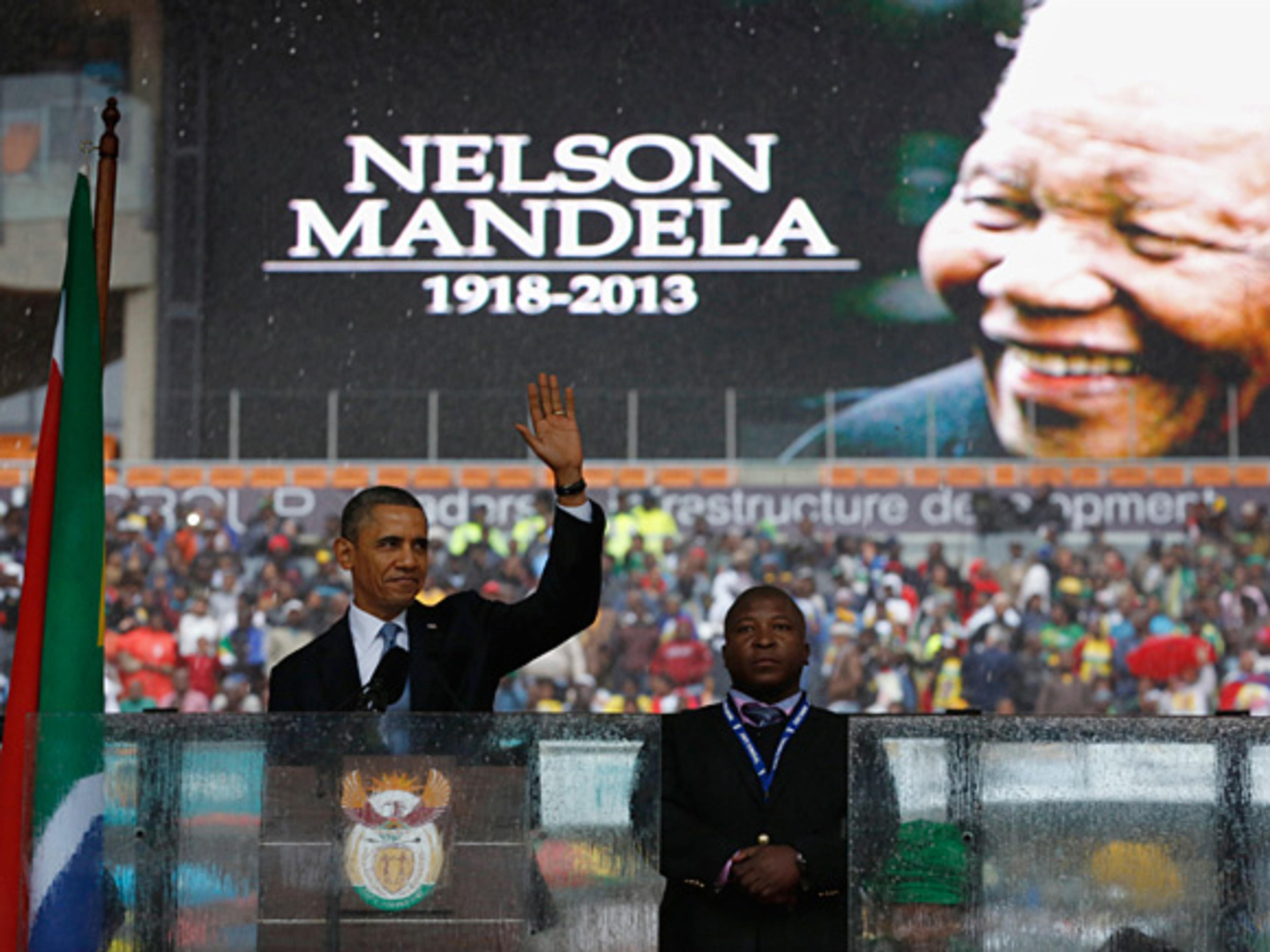 The memorial service was held at the football stadium where Nelson Mandela made his last public appearance during the 2010 FIFA World Cup, at which time he was honoured with prayers, speeches and songs.
