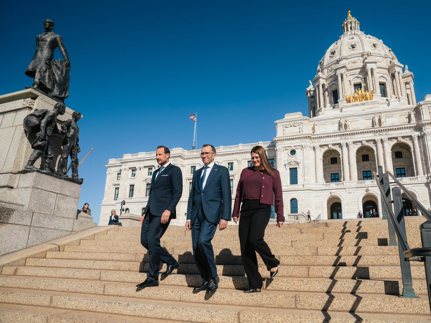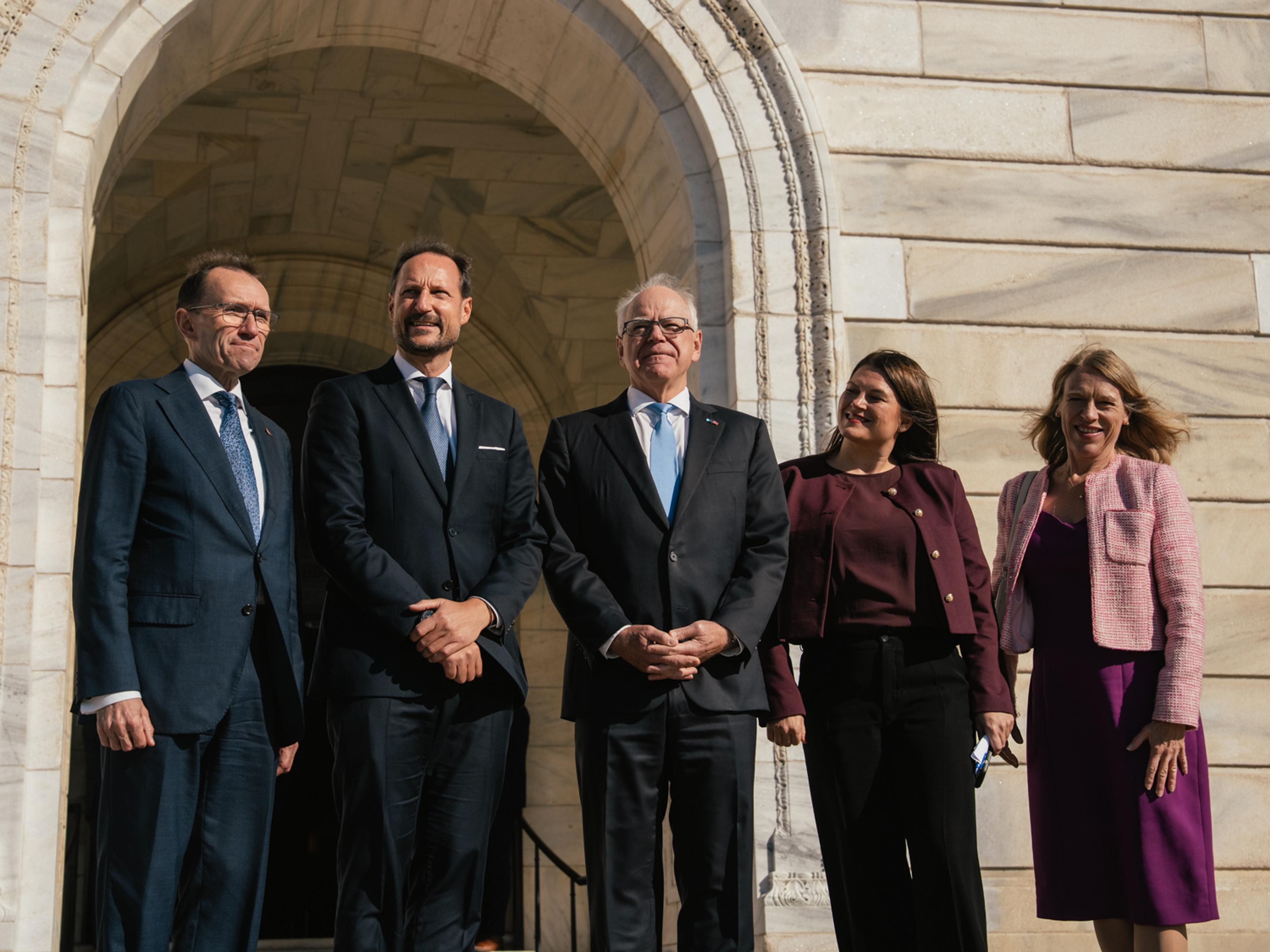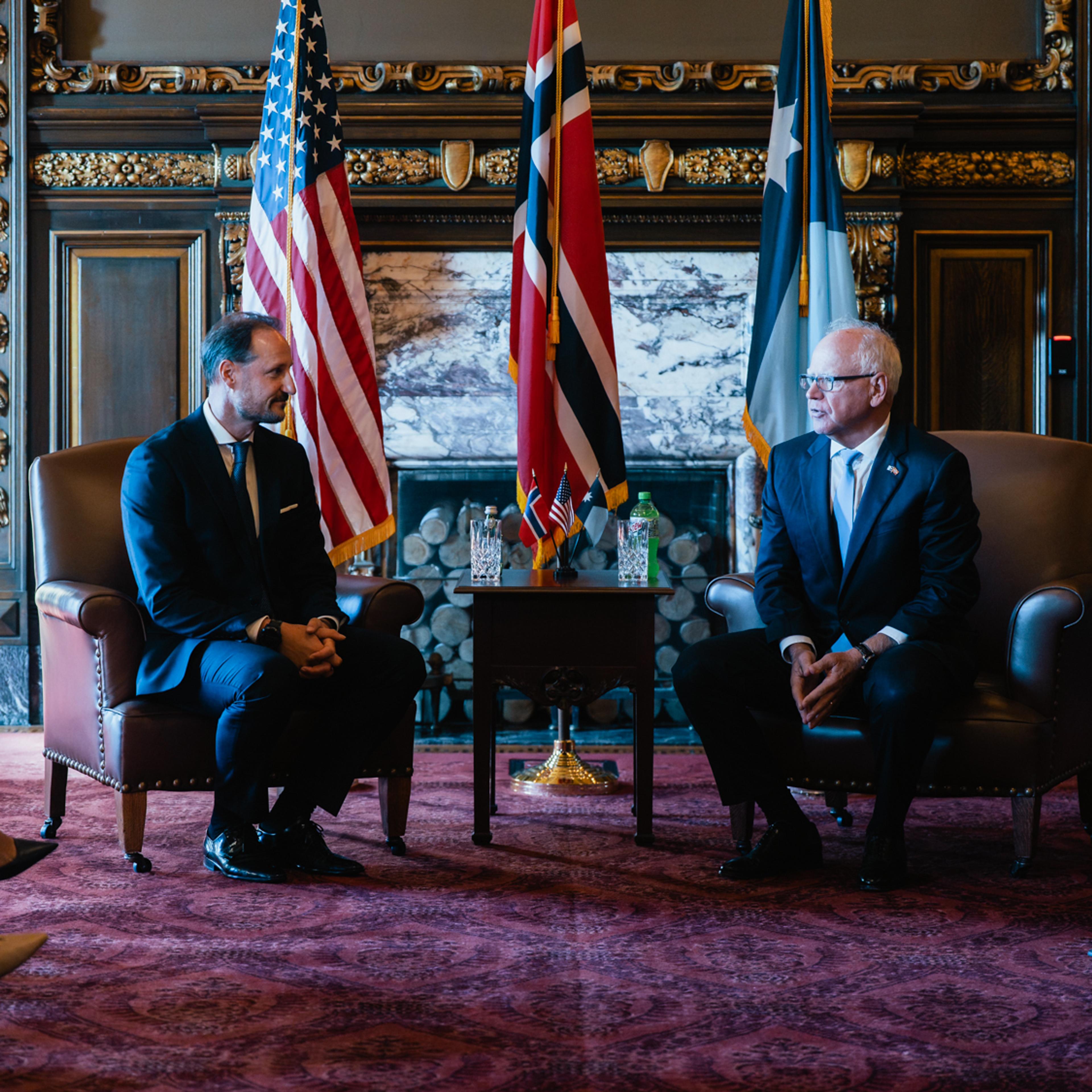 In Minnesota, Governor Tim Walz welcomed Crown Prince Haakon, Minister of Foreign Affairs Espen Barth Eide, and Minister of Trade and Industry Cecilie Myrseth at the Minnesota State Capitol. The discussions focused on the strong ties between Minnesota and Norway, as well as priorities and initiatives in both defence and business. Tim Walz has served as governor, and thus head of state, since 2019. He was also Kamala Harris’ vice-presidential candidate during the 2024 presidential campaign.
