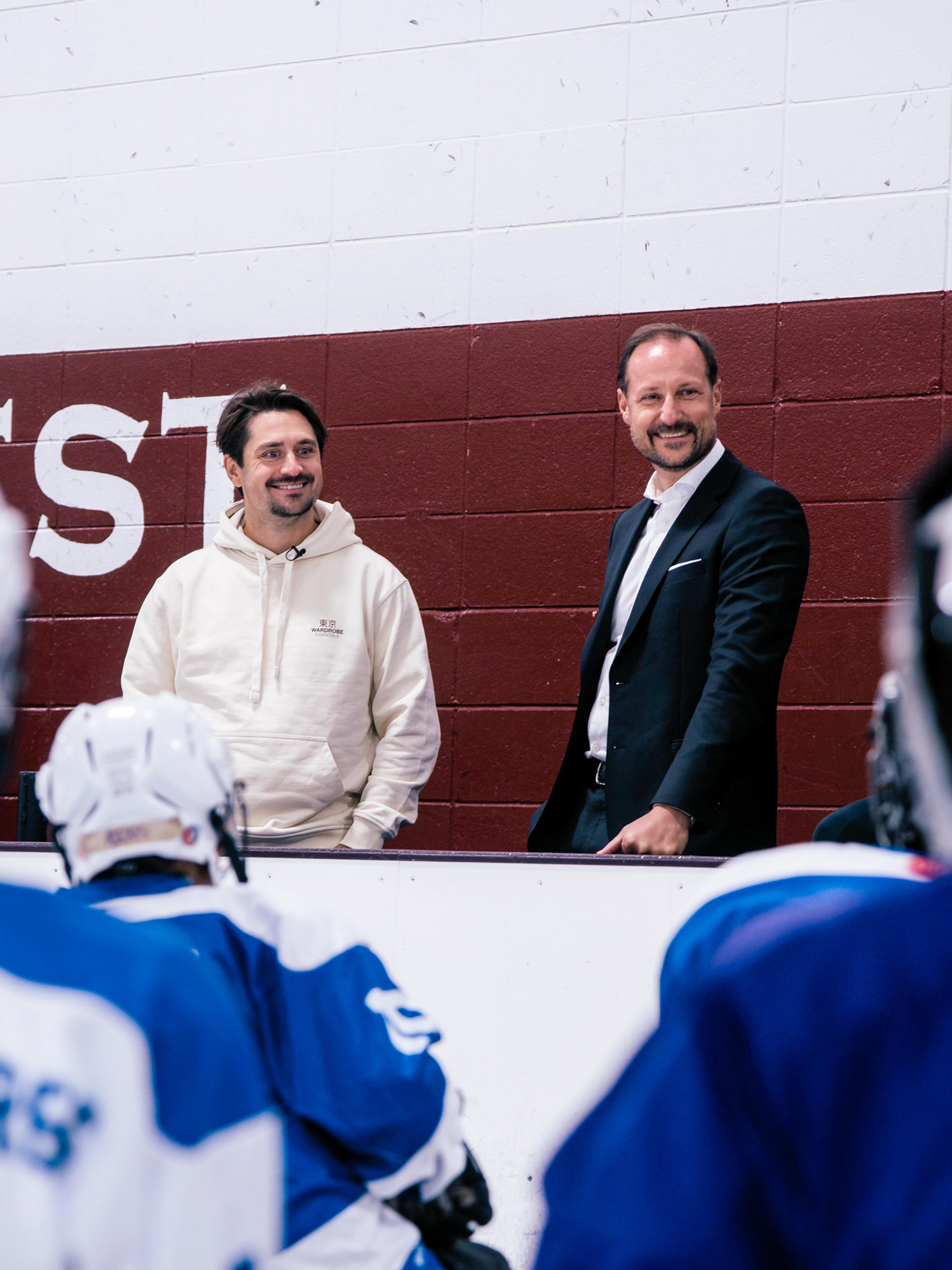 The ice hockey team Minnesota Wild has, in recent years, built itself up as a team competing in the world’s premier ice hockey league, the American National Hockey League (NHL), and Norway’s most famous ice hockey player, Mats Zuccarello, plays for the team. The Crown Prince visited a youth ice hockey training session for boys and girls, organised by the DinoMights organisation, alongside Zuccarello.