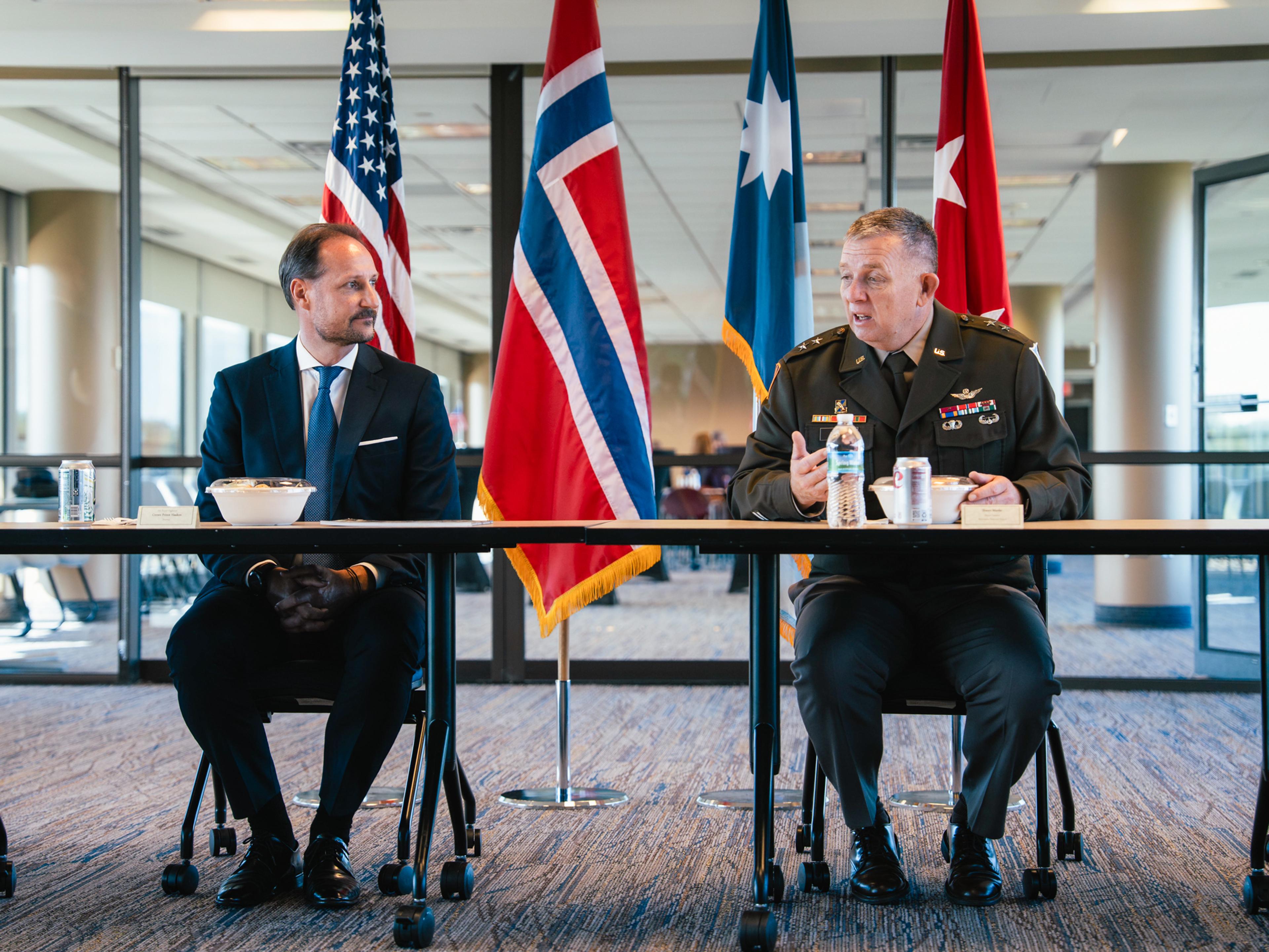 Following the meeting with Governor Walz, The Crown Prince, the Minister of Foreign Affairs, and the Minister of Trade and Industry proceeded to meet with the Minnesota National Guard. The aim of the meeting was to emphasise the importance of the strong ties between Minnesota and Norway and to further strengthen the long-standing cooperation.