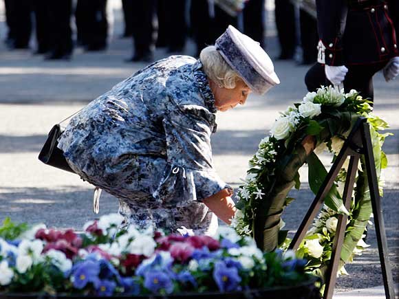 It is traditional for heads of state paying an official visit to Norway to lay a wreath at the national monument at Akershus Fortress. Queen Beatrix was accompanied by King Harald to the monument, where she laid a wreath in commemoration of the Norwegians who lost their lives in the Second World War. Following the wreath laying, Queen Beatrix left to attend a meeting with the President of the Storting, Dag Terje Andersen.