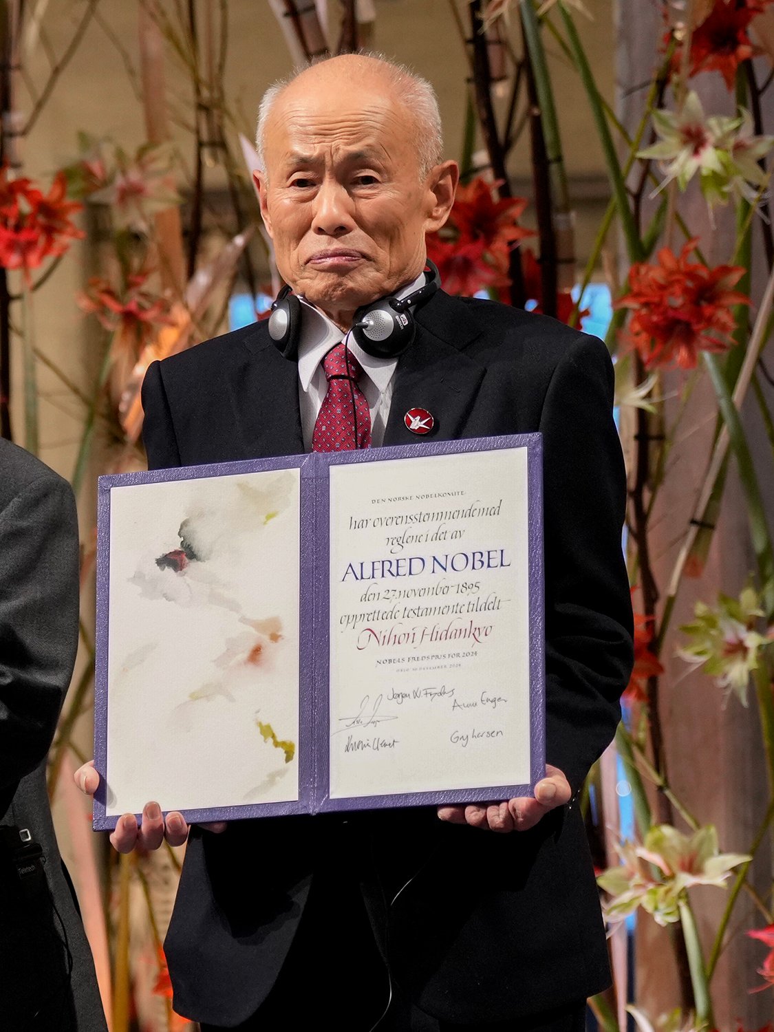 The chair of the Nobel Committee, Jørgen Watne Frydnes, presented the committee’s reasoning for the award and emphasized the important role Nihon Hidankyo has played as a disseminator of knowledge and influencer in the fight against nuclear weapons.