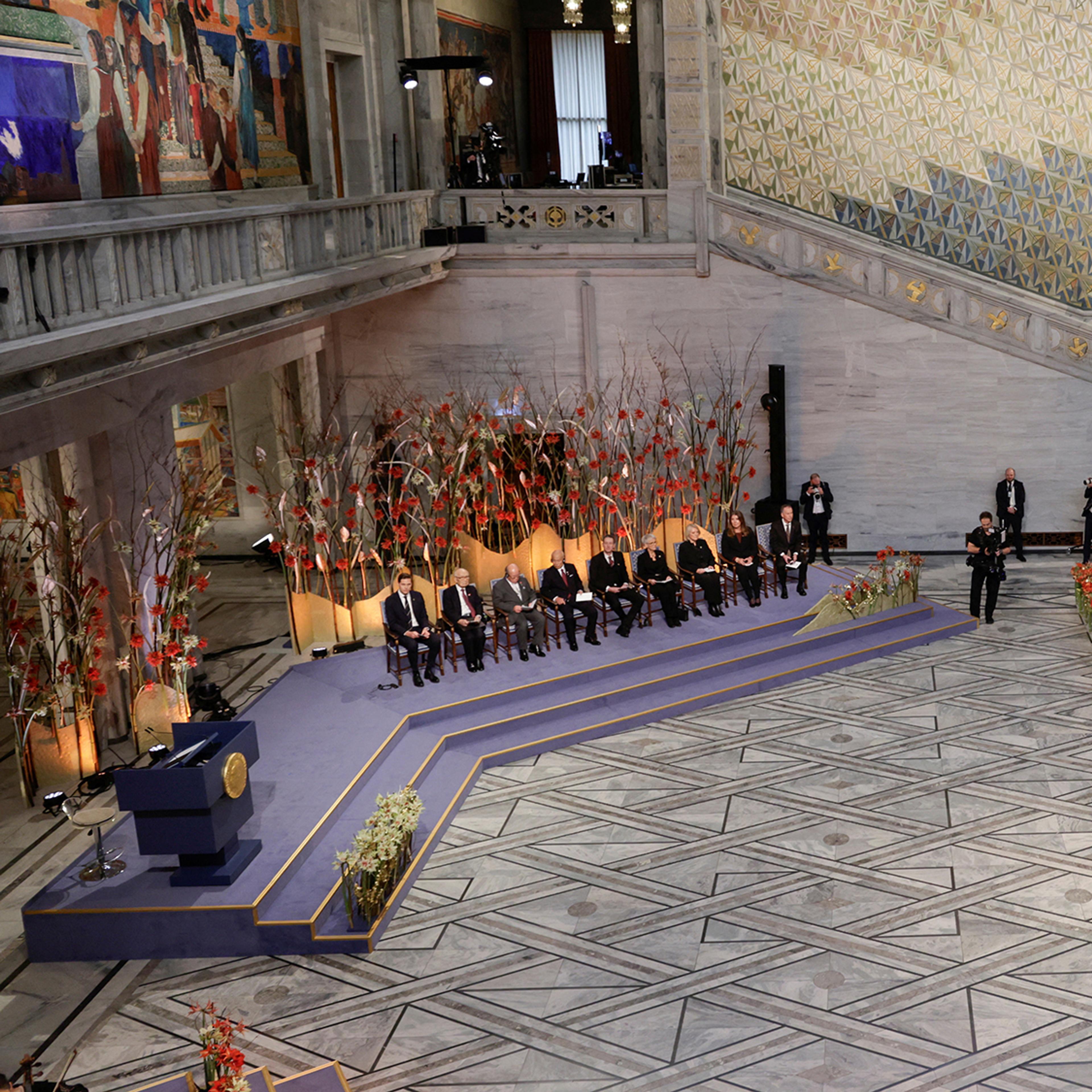 Their Majesties The King and Queen, and Their Royal Highnesses The Crown Prince and Crown Princess attended the ceremony at Oslo Town Hall.
