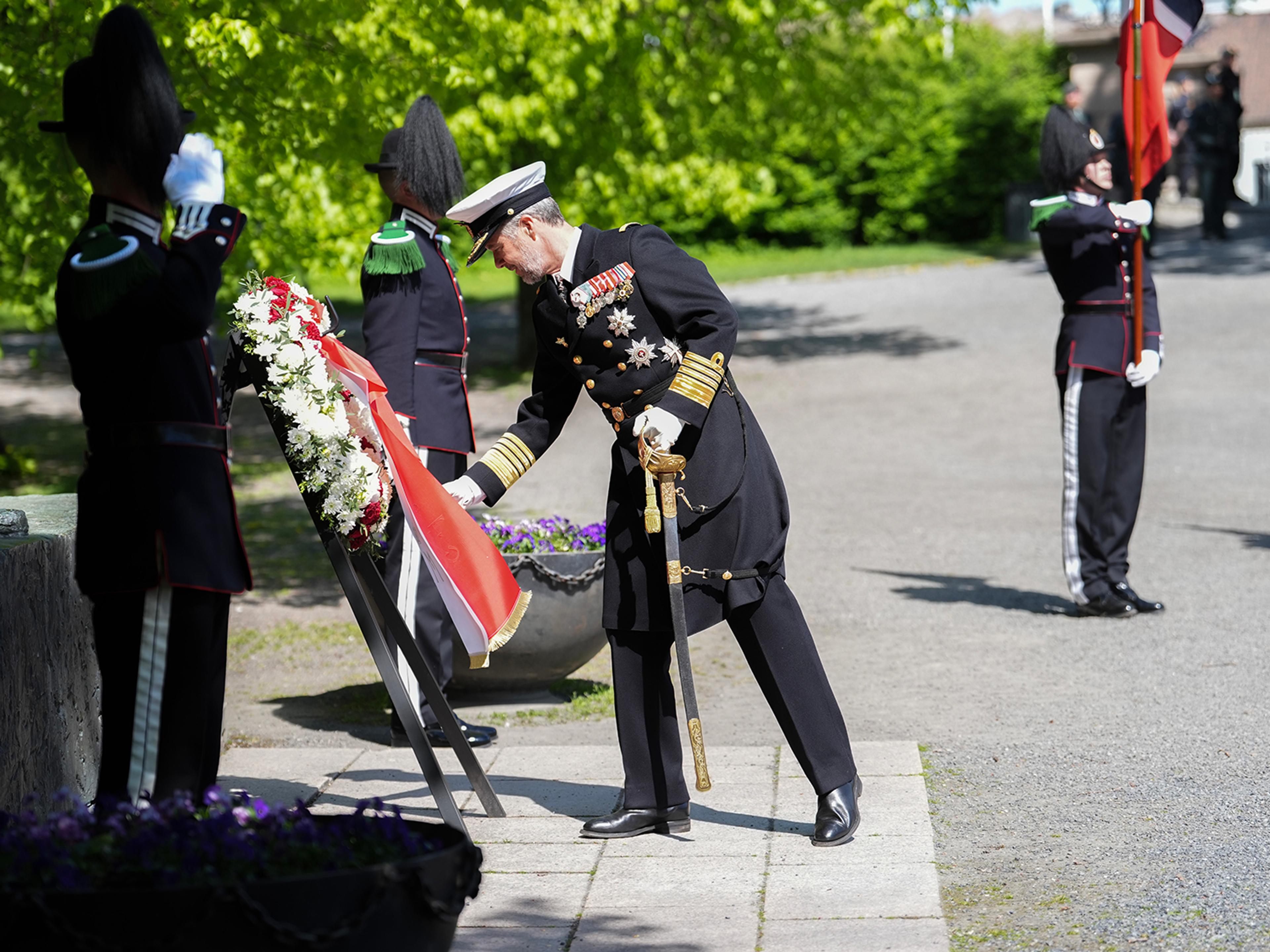 It is a tradition for visiting heads of state to lay a wreath at the national monument at Akershus Fortress, and the King and Queen of Denmark paid tribute to Norwegians who lost their lives in the Second World War. Crown Prince Haakon and Crown Princess Mette-Marit accompanied the King and Queen of Denmark to the wreath-laying ceremony.