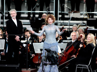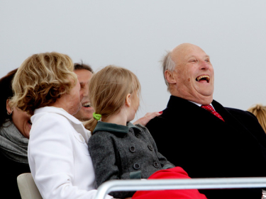 In the evening the Government invited all of Norway to a free gala performance on the roof of the Opera House in Oslo. The King and Queen arrived on the Royal Barge Stjernen, accompanied by the Crown Prince and Crown Princess and their family, Princess Märtha Louise and Mr Ari Behn and their family, and Princess Astrid, Mrs Ferner.