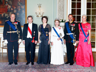In the evening, King Harald and Queen Sonja hosted a gala banquet for 193 guests at the Royal Palace for President Sauli Niinistö and Mrs Jenni Haukio. Crown Prince Haakon and Crown Princess Mette-Marit were also in attendance. King Harald and President Niinistö both spoke during the banquet. The King’s speech is published on this website.