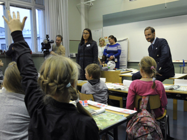 The first visit of the day took place at Kallio primary school, which has a relatively high proportion of ethnic minority pupils. Emphasis is placed on language instruction, and the Crown Prince visited a group of Finnish-speaking children undergoing intensive instruction in Swedish as well as a classroom of minority pupils studying Finnish.