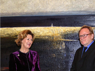 Queen Sonja was in attendance at Kings Place Gallery in London on Thursday evening, where Ørnulf Opdahl is holding an exhibition in connection with the London Jazz Festival. Opdahls works are a visual complement to trumpeter Nils Petter Molværs concerts over the next several days as part of the Scene Norway 2 programme of music and readings at Kings Place. Using various types of artistic expression, Mr Opdahl and Mr Molvær explore their shared inheritance from the vistas of the city of Ålesund and the islands in the adjacent fjord.