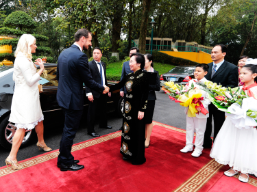 The Crown Prince and Crown Princess were formally received at the Presidential Palace this morning by the Vice President of Vietnam, Her Excellency Mrs Nguyen Thi Doan. The ceremony was followed by discussions with the Vice President and official discussions between the Norwegian and Vietnamese business delegations.