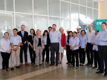 Crown Prince Haakon and Crown Princess Mette-Marit concluded their trip to Vietnam with visits to two Norwegian companies located in the Mekong Delta region. EWOS supplies fish feed to local aquaculture facilities, while Pharmaq’s activities include the manufacture of vaccines for production fish.