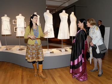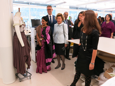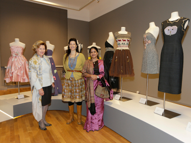 In a parallel programme, Queen Sonja accompanied Madame Sharmistha Mukherjee to the Museum of Decorative Arts and Design to view an exhibition by the Norwegian fashion designer Julie Skarland, which opens on Saturday. Ms Skarland has resided in India for the past nine years, which is evident in the exhibition entitled Paris – New Delhi – Oslo. The exhibition displays clothing from her collections from Paris and New Delhi, and Queen Sonja and Madame Mukherjee had the opportunity to view clothing inspired by recycling, fair trade – and knitting.