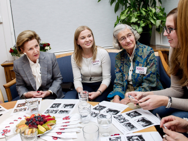 The works of Christian Krogh, Pablo Picasso, Edvard Munch, Edouard Manet and other renowned artists formed the starting point for interesting discussions about the role of women in society and the family in the past and today. Reproductions of selected paintings were handed out, and the women, including Queen Sonja, were divided into groups. The groups then engaged in informal conversation on the motifs of the paintings and shared their reflections on changes in women’s lives. Each group then presented its interpretation of the painting it had been assigned.