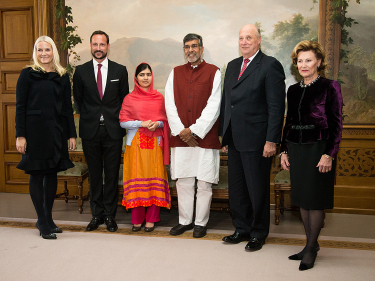 On Wednesday, the Nobel Peace Prize was awarded to Kailash Satyarthi and Malala Yousafzai. Their Majesties The King and Queen and Their Royal Highnesses The Crown Prince and Crown Princess were in attendance in Oslo City Hall, where the Nobel Laureates received a warm standing ovation.
