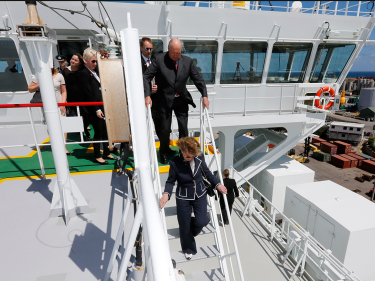 Today, King Harald and Queen Sonja together with Minister of Petroleum and Energy Tord Lien visited the Wilh. Wilhelmsen Group’s ship MV Tugela. On board the vessel the guests were given an introduction to Norwegian maritime activities in Australia and Norwegian-Australian cooperation in the maritime sector and offshore industry.