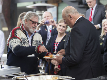 King Harald was welcomed by Mr Doug Dixon, President of Pacific Fishermen Shipyard, who gave the King a tour of the shipyard and talked about its history. During the tour, the King had the opportunity to greet members of the area’s vibrant Norwegian-American community. Among them were ship owners, fishermen and crab fishers - one of them Mr Sig Hansen from the TV seires Deadliest Catch.