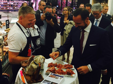 Crown Prince Haakon met with the representatives of SALMA and the Fenalår from Norway producer consortium, and heard about their experiences with the French market. The third Norwegian producer is the Røros Food and Beverage Group, which has not yet established activities abroad, but is seeking to test out its products in France.