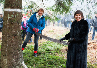 This year’s tree was felled near Ødegården farm in the Østmarka forest in Oslo on 18 November. Mayor Marianne Borgen took part in the felling together with Lady Christabel Flight, among others. The British Ambassador to Norway and pupils from Nøklevann school and Oslo International School were also present.