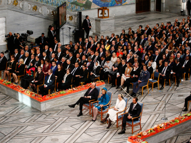 Their Majesties The King and Queen and Their Royal Highnesses The Crown Prince and Crown Princess were in attendance when the Nobel Peace Prize for 2015 was awarded to the Tunisian National Dialogue Quartet in a formal ceremony at Oslo City Hall today.