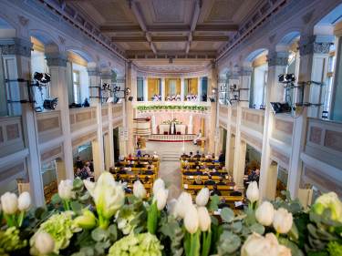 Her Majesty Queen Margrethe of Denmark and Their Majesties King Carl Gustaf and Queen Silvia of Sweden were the King and Queen’s guests during the jubilee celebration and were in attendance at the service in the Palace Chapel. Also present were the members of the Royal Family and representatives of official institutions in Norway.