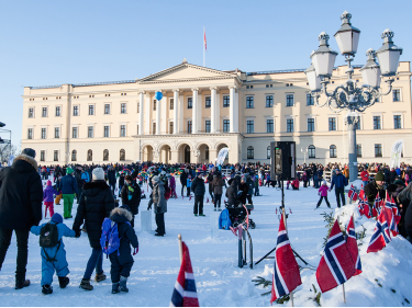 Several thousand people took part in celebrating the 25th anniversary of the ascension to the Norwegian throne of Their Majesties King Harald and Queen Sonja today.